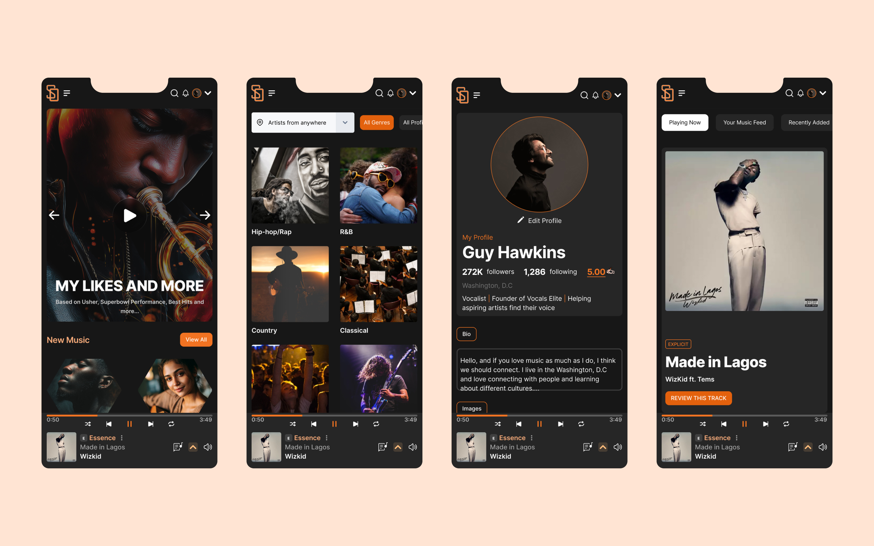 The goal was to create a product that felt familiar yet different and most importantly, tailored to highlight new artists, not just stream them. The Web App was created with artist and users of those artists in mind, and creating a component of community.